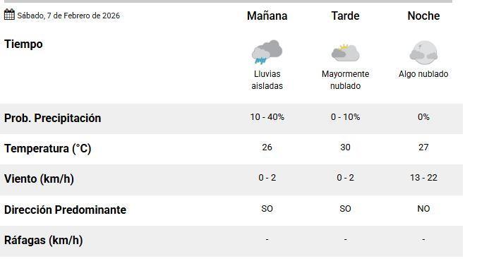 Según el Servicio Meteorológico Nacional (SMN), este sábado 7 de febrero se presenta con condiciones inestables en Santiago del Estero, con elevada humedad y probabilidades de precipitaciones durante gran parte de la jornada, según el pronóstico oficial actualizado.