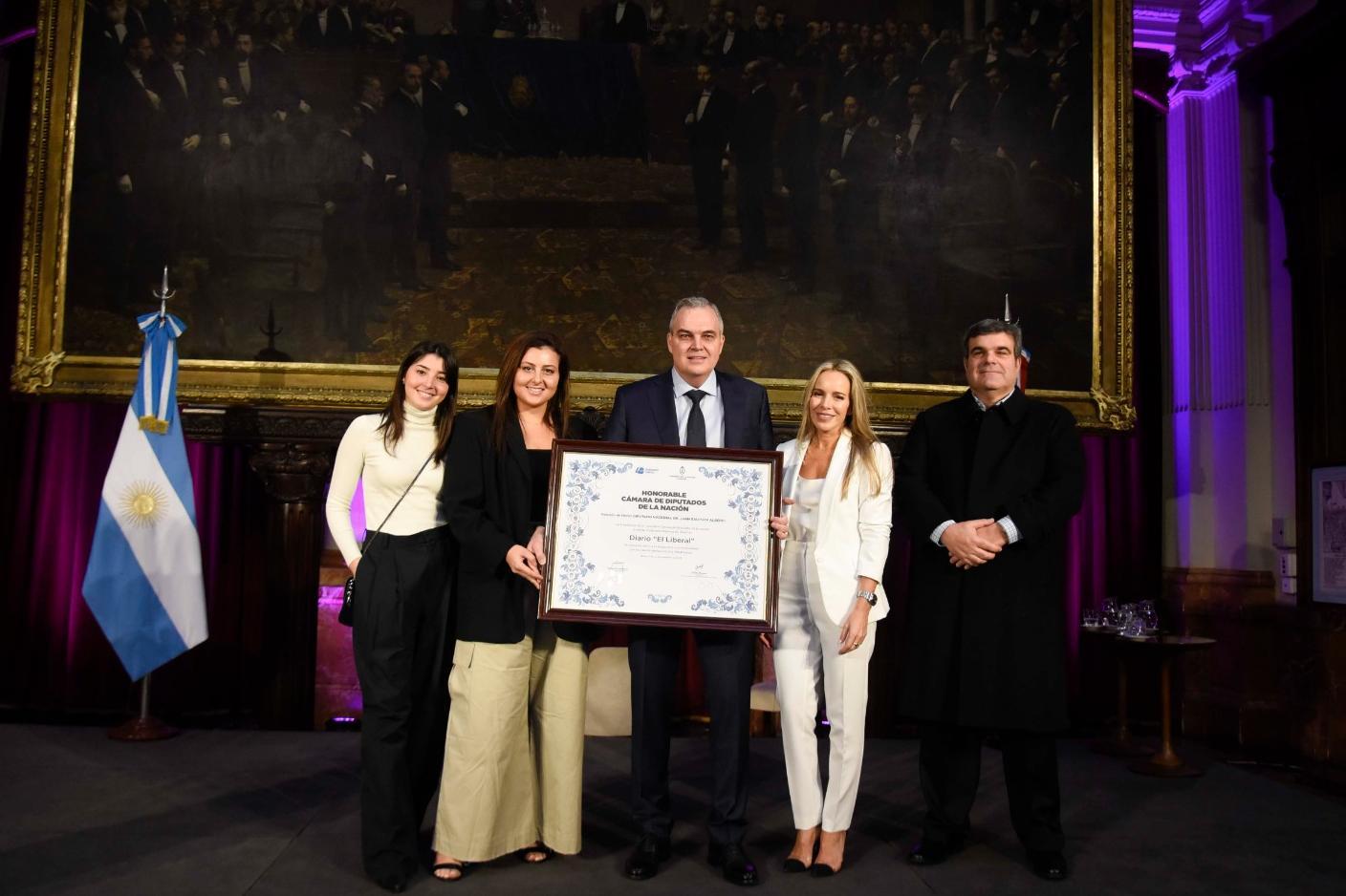 La Cámara de Diputados de la Nación otorgó la mención de honor "Diputado Nacional, Dr. Juan Bautista Alberdi" al Diario EL LIBERAL de Santiago del Estero. El premio se entregó este viernes 3 de noviembre, día de su aniversario, en el Salón de los Pasos Perdidos del Congreso de la Nación, distinción que fue recibida por el Director del medio de comunicación, Lic. Gustavo Ick.