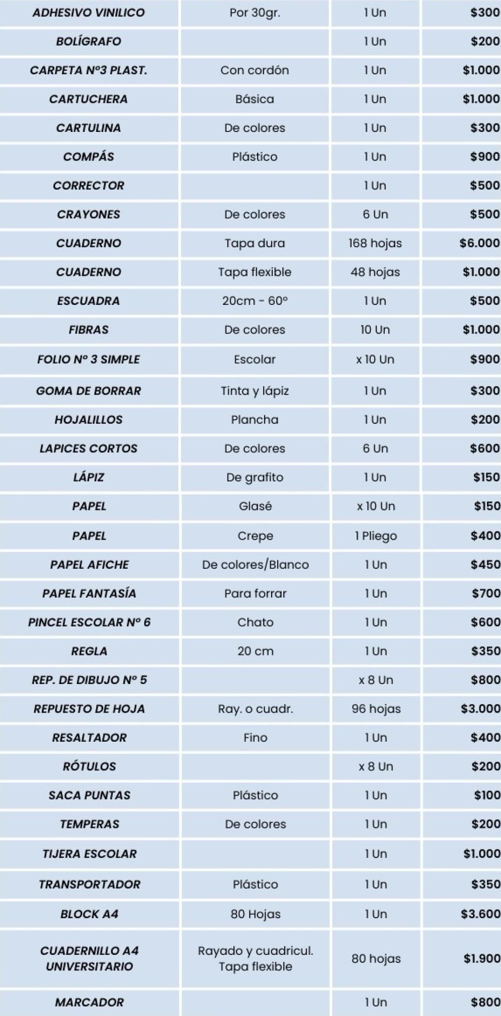 El Gobierno de la provincia, a través del Ministerio de Economía, dio a conocer el Listado de Precios Escolares Santiagueños Sugeridos, compuesto por 34 artículos que estarán disponibles desde este martes 10 de febrero hasta el 31 de marzo en librerías adheridas de ciudad Capital, La Banda, Frías, Las Termas de Río Hondo, Monte Quemado y Fernández.