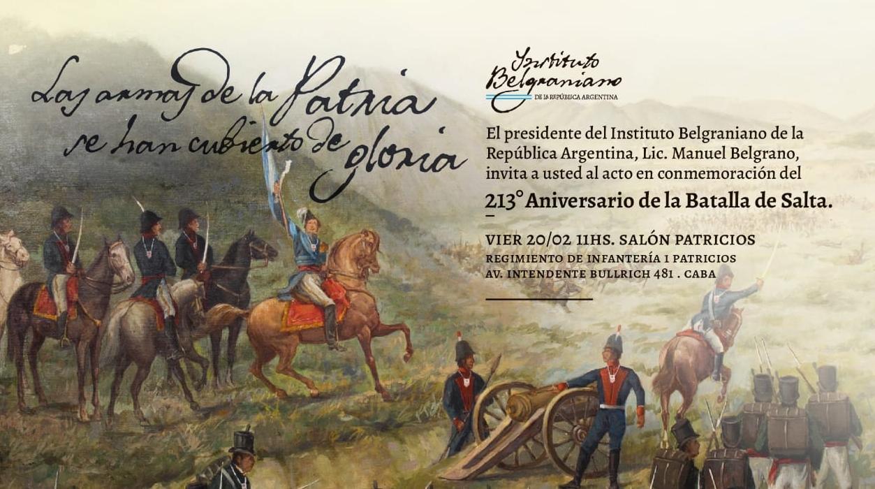 Juramento de la bandera: Al llegar al río Pasaje, el día 13 de febrero, Belgrano formó un cuadro en la margen Norte del río Pasaje, y dispuso que sus tropas jurasen obediencia a la Asamblea General Constituyente instalada en Buenos Aires, el 31 de enero, asumiendo el mando de las Provincias Unidas.