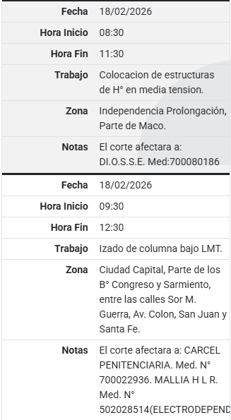 Cortes programados de electricidad para este 18 de febrero en Santiago del Estero: a qué hora y en qué barrios Cortes programados de electricidad para este 18 de febrero en Santiago del Estero: a qué hora y en qué barrios