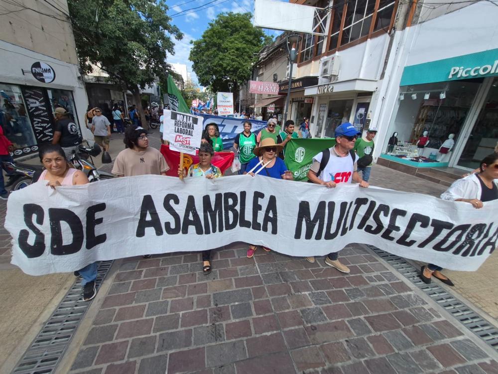 La Asamblea Multisectorial SDE encabezó una marcha que recorrió las principales arterias de la zona céntrica, con la participación de trabajadores, sindicatos y vecinos que expresaron su rechazo al proyecto que modifica las leyes laborales y cuestionan sus efectos sobre derechos y condiciones de trabajo.