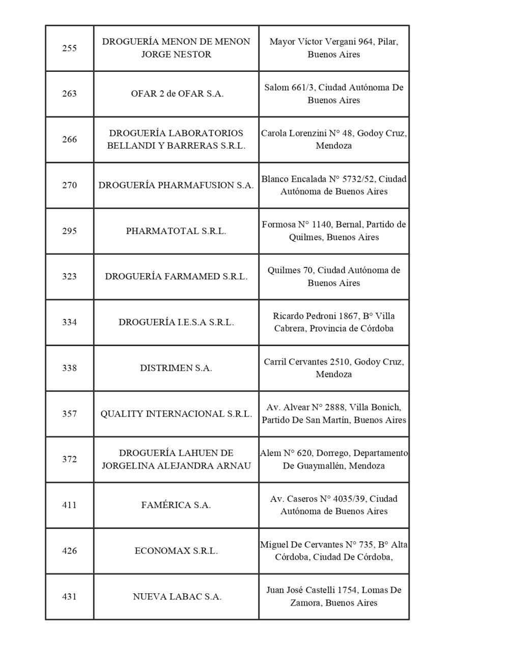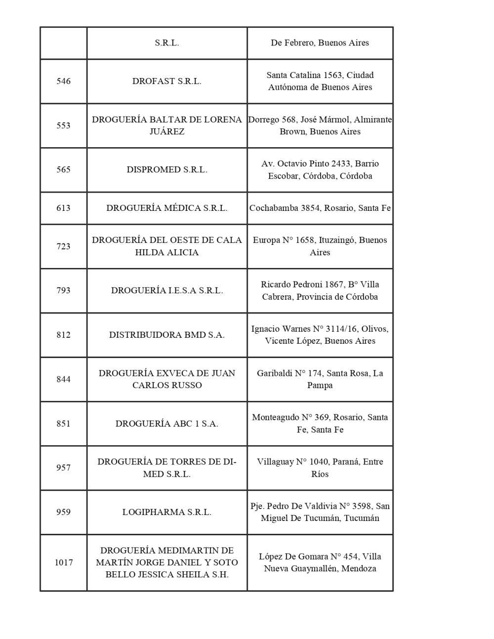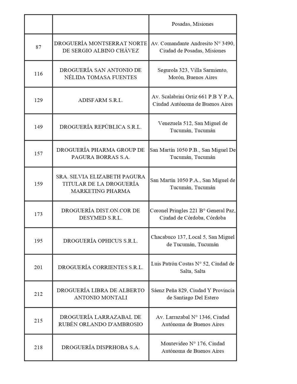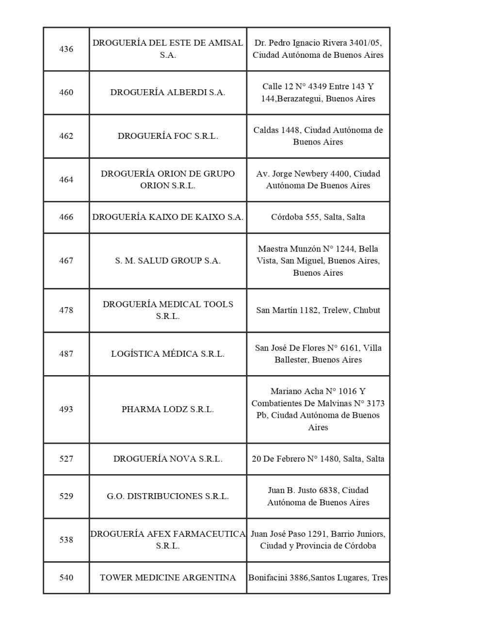 La lista completa de droguerías alcanzadas por la medida: