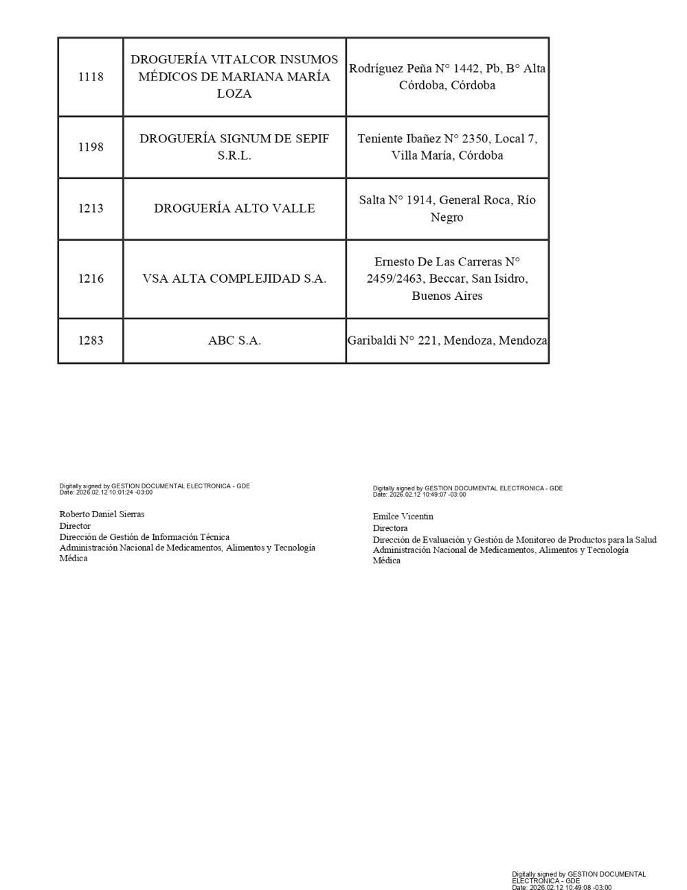 La medida fue dispuesta a través de la Disposición 694/2026, en la que el organismo nacional resolvió dar de baja las habilitaciones luego de detectar que los Certificados de Cumplimiento de Buenas Prácticas de Distribución de Medicamentos se encontraban vencidos y que no se había presentado el trámite de renovación correspondiente.