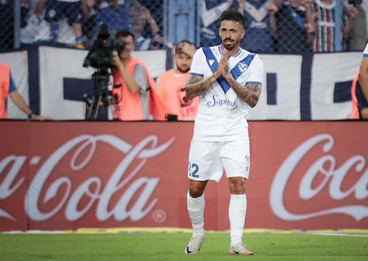 Cuando iban 34 minutos, el extremo de Vélez Tobías Andrada abrió hacia la derecha para la subida del lateral Joaquín García, cuyo remate al segundo palo fue despejado por Armani.