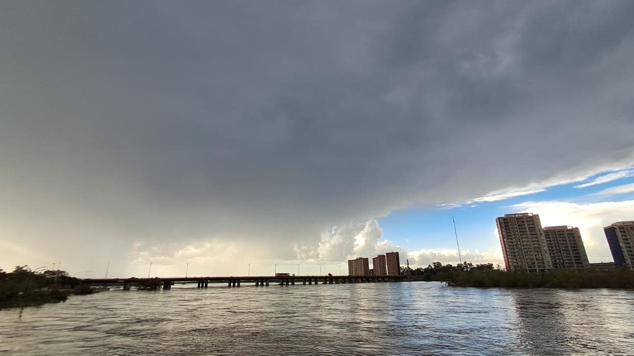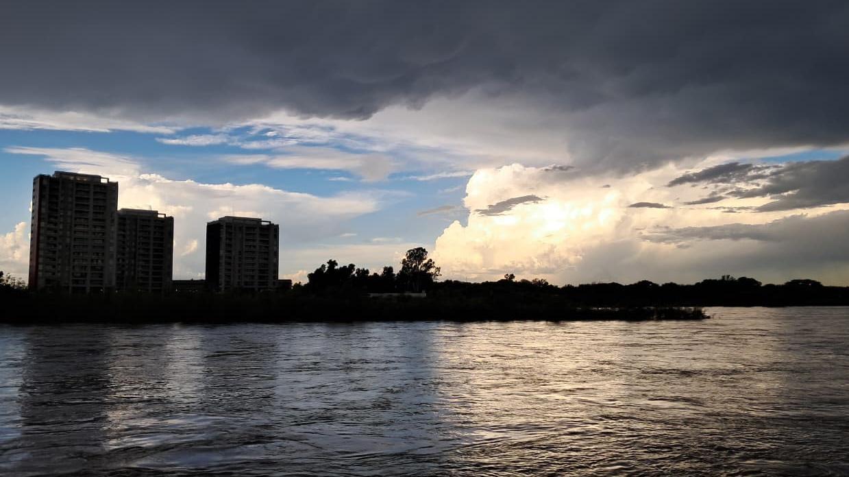 El espejo de agua del Río Dulce también fue protagonista de la jornada: el oleaje superficial y el cambio brusco en la luminosidad marcaron el inminente cambio de tiempo.