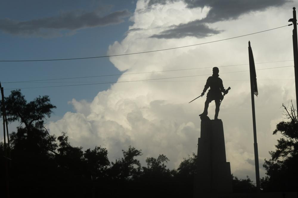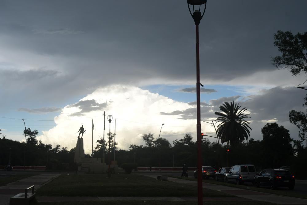 Desde el tradicional Parque Aguirre, las fotografías reflejan el cielo que se tornaba cada vez más amenazante. Una escena similar se vivió en el sector del Monumento a Francisco de Aguirre, donde las nubes bajas dominaron el paisaje.
