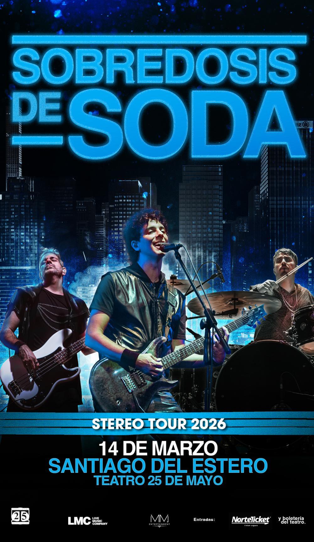 Sobredosis de Soda ofrece una propuesta artística cuidada e inédita: el sonido del trío llevado al máximo nivel, acompañado por una energía escénica que conecta profundamente con el público y convierte cada concierto en una experiencia única.