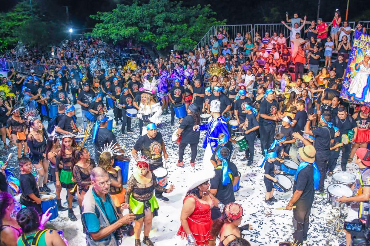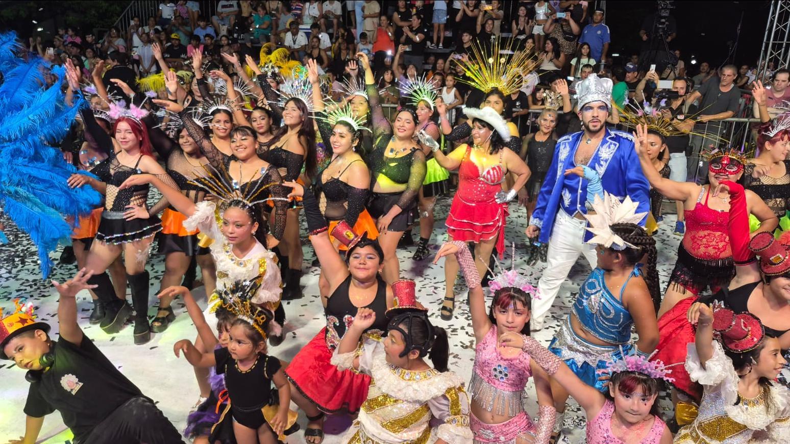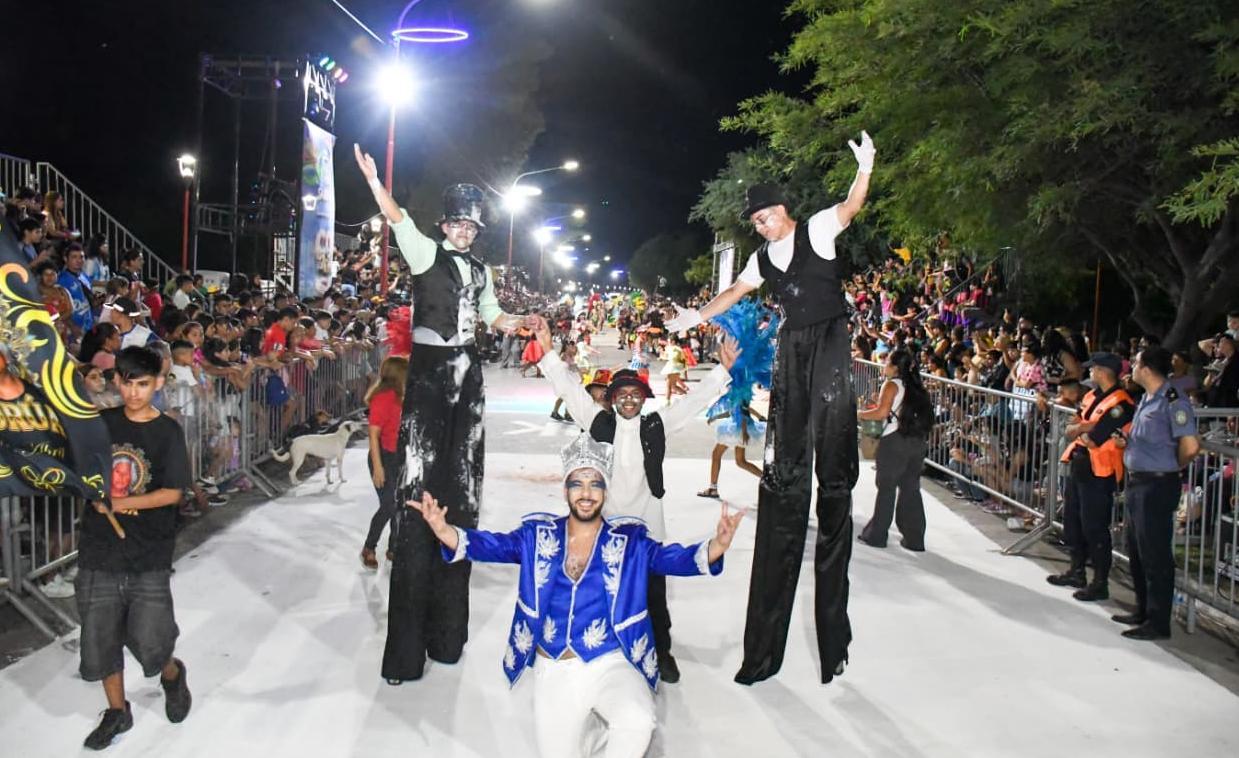 El desfile de agrupaciones y carrozas se desarrolla sobre la avenida Costanera Luis Lescano, convertida en un verdadero corsódromo a cielo abierto.