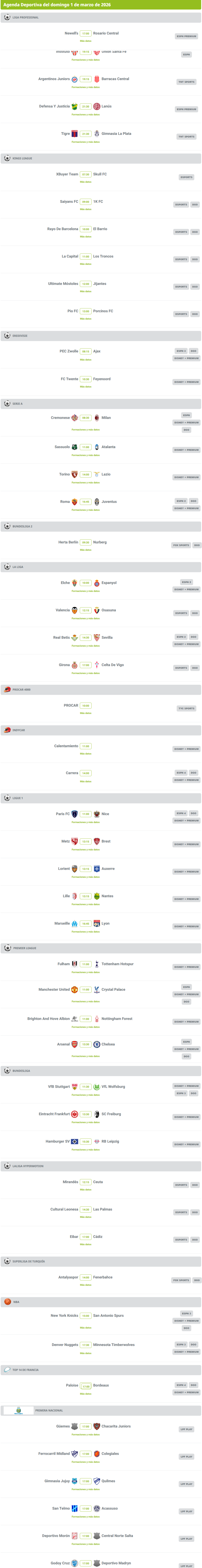 Agenda deportiva: hora y dónde ver los partidos de este 1 de marzo Agenda deportiva: hora y dónde ver los partidos de este 1 de marzo