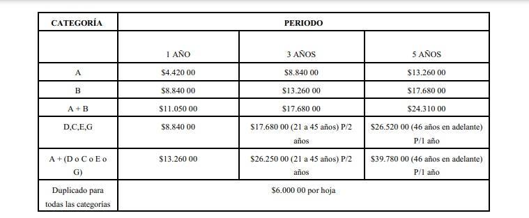 Según la disposición oficial, publicada en el Boletín Oficial, quedarán establecidas las siguientes tasas: Categoría y Subcategoría