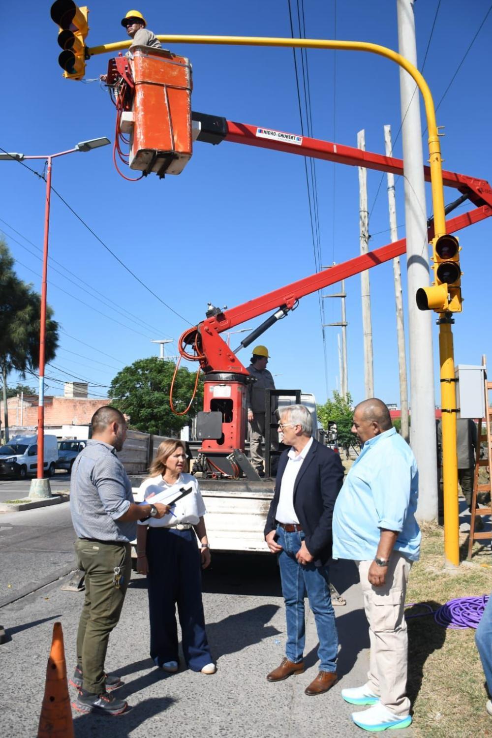 La intendente de la Capital, Ing. Norma Fuentes, supervisó la instalación de los nuevos semáforos que comenzarán a funcionar en la intersección de Solís y Moreno, en el marco del Programa de Semaforización que lleva adelante la Municipalidad con los propósitos de ordenar el tránsito vehicular y peatonal.