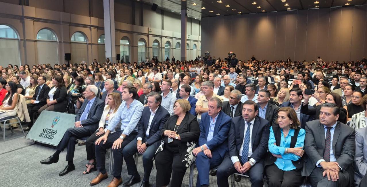 Ante un Fórum colmado por más de 1500 personas entre docentes, directivos docentes, autoridades provinciales, intendentes y comisionados municipales e invitados especiales, y con más de 2000 personas conectadas por streaming siguiendo el evento, el gobernador Elías Suárez encabezó la jornada de capacitación docente sobre el sistema del Consejo Virtual, a través del cual se podrá concursar por cargos y horas cátedras. Fue acompañado por el vicegobernador, la ministra de Educación, Mariela Nassif; y la presidenta del Consejo General de Educación, María Helena Herrera