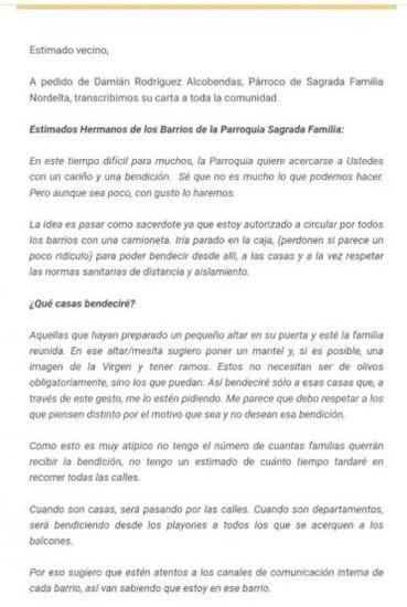 Su nombre había cobrado notoriedad pública en abril de 2020, en plena cuarentena por la pandemia de Covid-19. En ese contexto, anunció por correo electrónico a los vecinos que recorrería los barrios para bendecir las viviendas con motivo de Semana Santa.