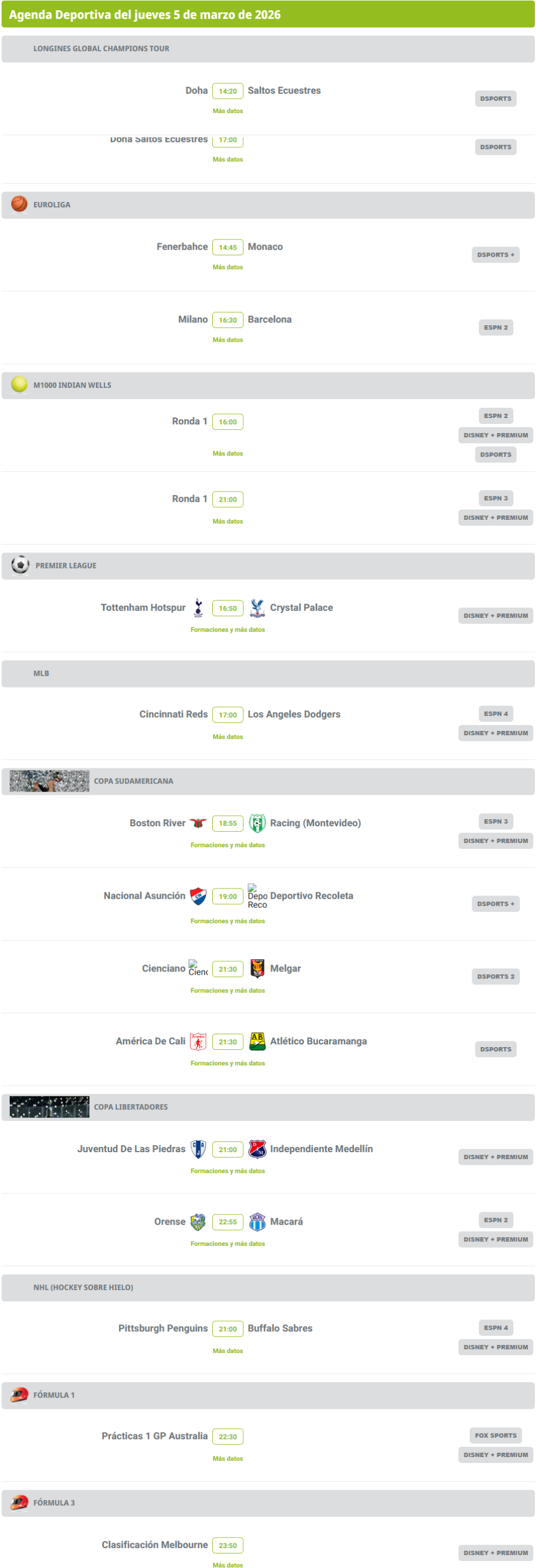 Agenda deportiva: hora y dónde ver los partidos de este 5 de marzo Agenda deportiva: hora y dónde ver los partidos de este 5 de marzo