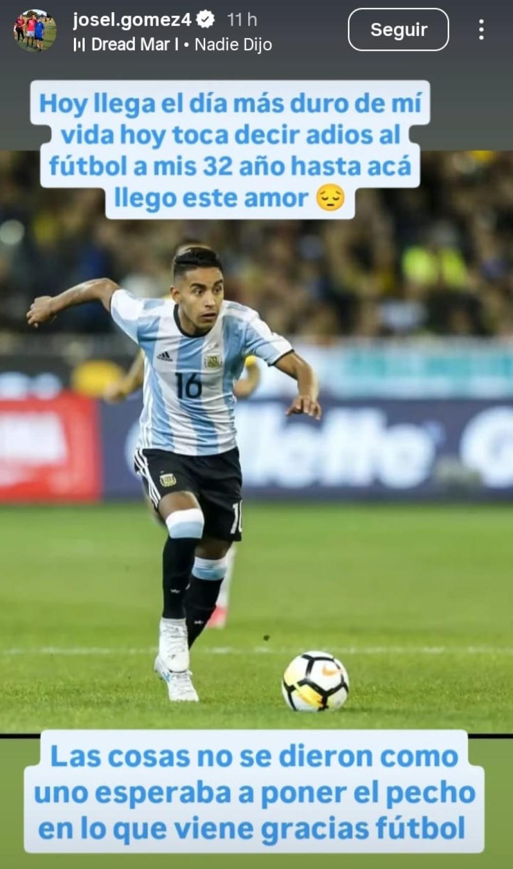 José Luis Gómez le dijo adiós al fútbol. Lo hizo a través de una publicación en una historia de su cuenta de Instagram donde escribió lo siguiente: "Hoy llega el día más duro de mi vida, hoy toca decir adiós al fútbol a mis 32 años. Hasta acá llegó este amor", expresó el lateral derecho que en su última participación en la actividad futbolística estuvo vistiendo la camiseta del Club Atlético Central Argentino de La Banda en el Torneo Regional Federal Amateur.