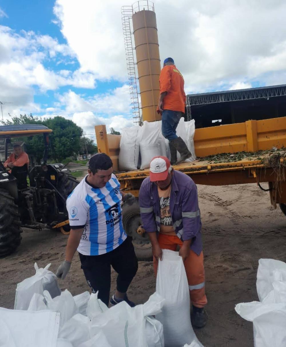 Con maquinaria pesada y cuadrillas de trabajadores municipales, se llevan adelante la construcción de barreras de contención mediante la colocación de bolsas de arena y la apertura de canales alternativos de desagüe, con el objetivo de evitar que se desborde del cause del río Albigasta avance hacia sectores urbanos con mayor densidad de viviendas.
