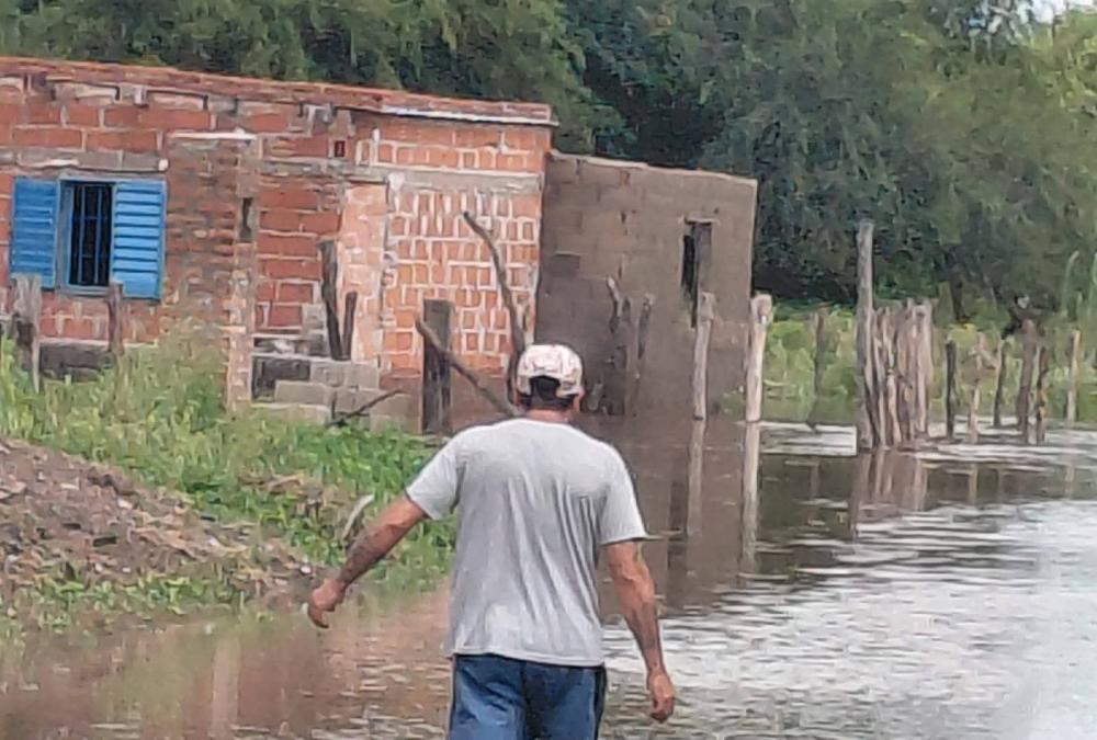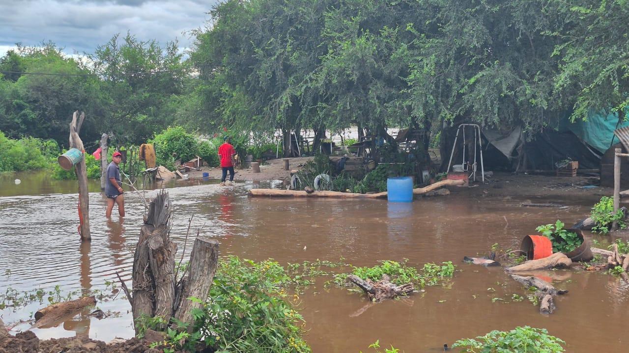 En la tarde de este martes, el cause del río Albigasta había comenzado a salir de su cajón original debido a la crecida por las lluvias en las sierras de Catamarca y el agua llegaba hasta el patio de algunas viviendas de los varrios Sumampa Sur y Eliseo Fringes.