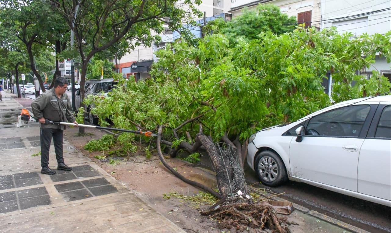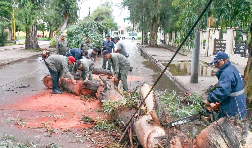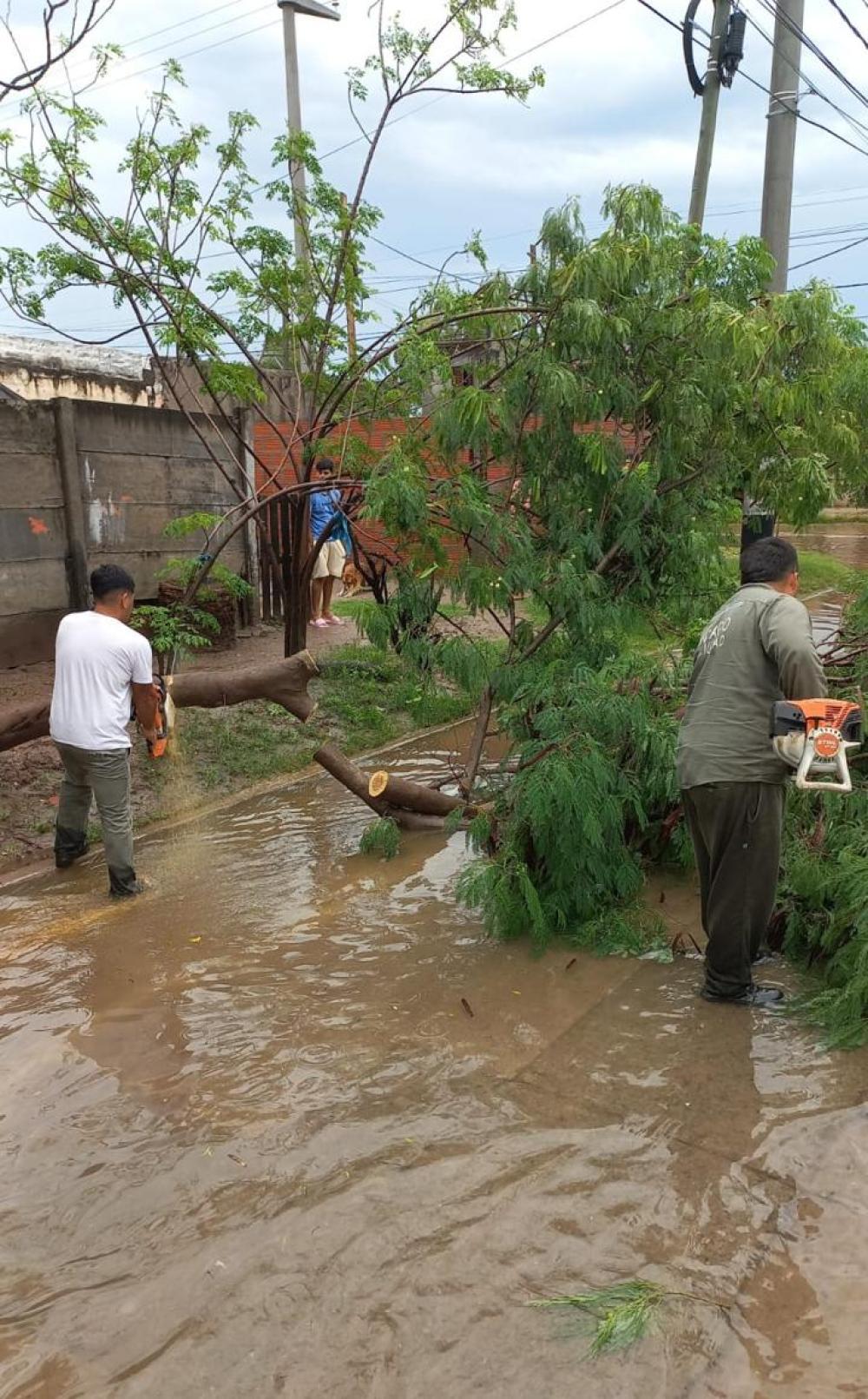 Cuadrillas municipales desplegaron operativos de limpieza de desagües y retiro de árboles caídos en diversos barrios.
