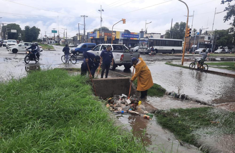 Una de las prioridades de la jornada fue la limpieza de desagües pluviales, los cuales presentaban graves obstrucciones debido a la acumulación de basura y residuos sólidos. Estas tareas de "taponado" son críticas para permitir el correcto escurrimiento del agua y evitar inundaciones en zonas vulnerables.