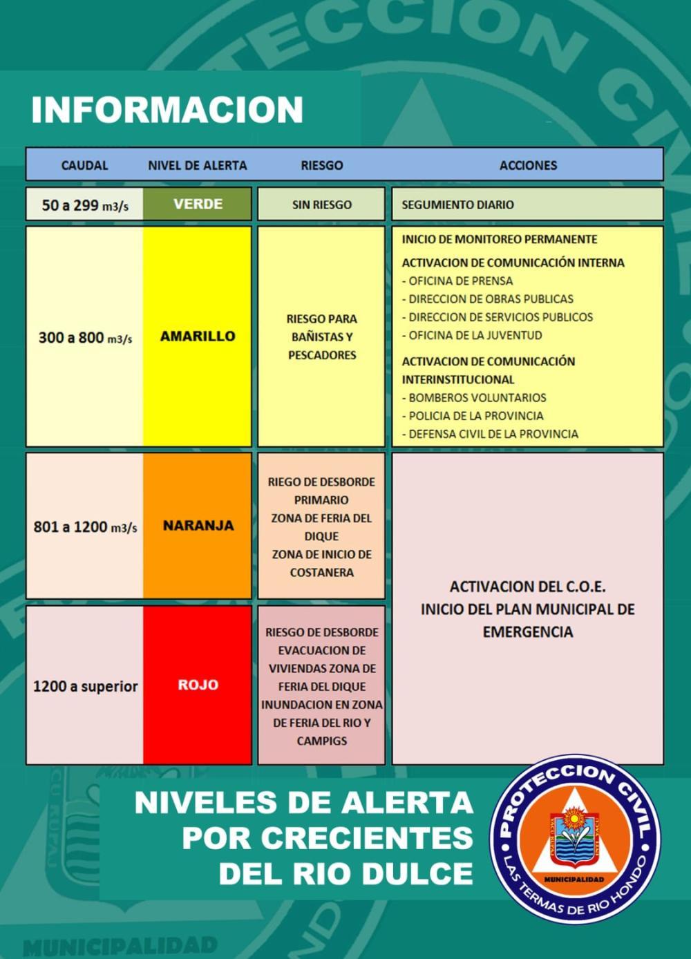 La situación hídrica en la zona ribereña ha alcanzado niveles críticos. Tras superar la cota de creciente de 274, la Municipalidad de Las Termas, a través de la Dirección de Protección Civil, declaró alerta roja para la ciudad de Las Termas.