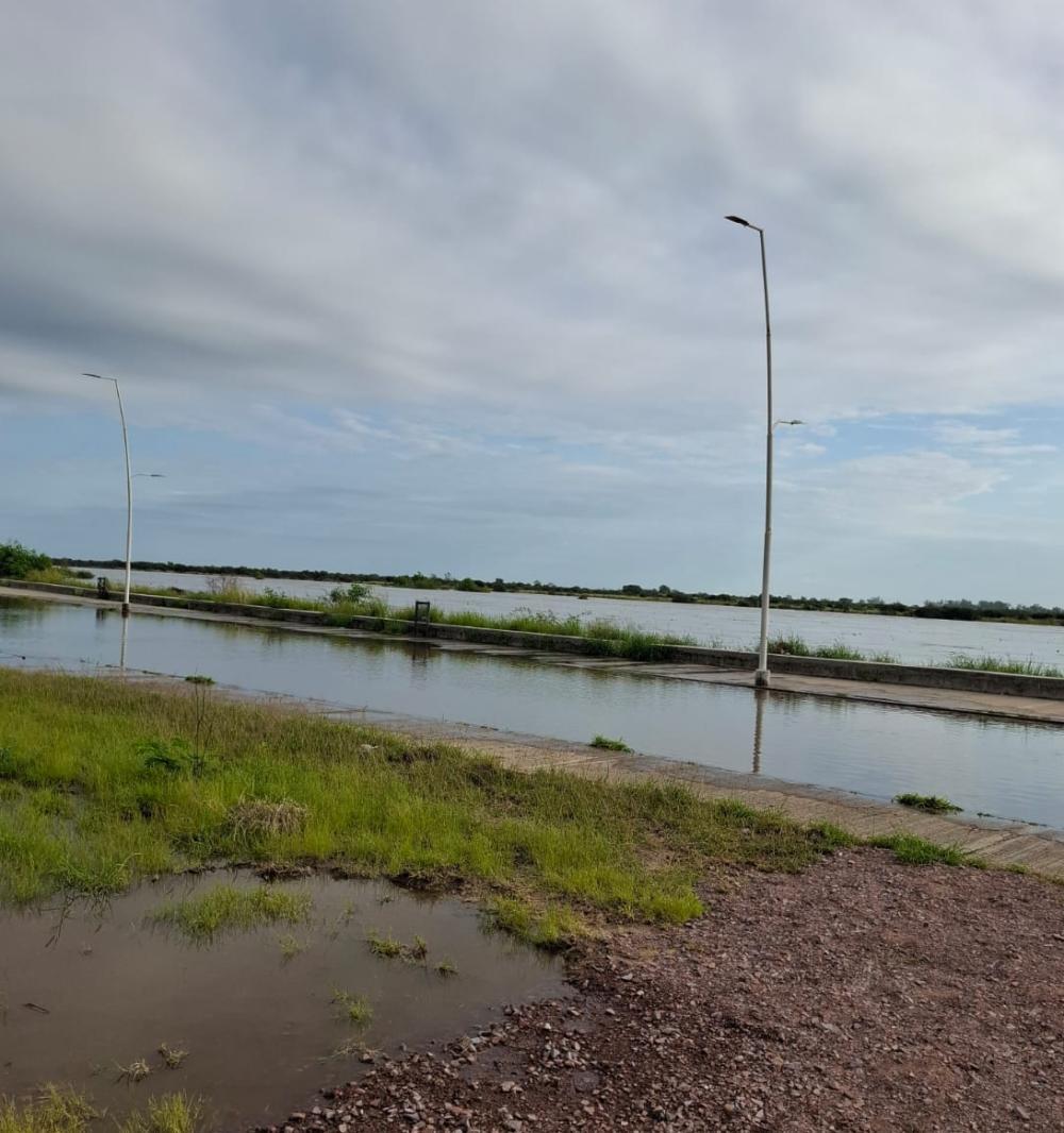 Desde temprano, el paisaje en la zona norte muestra el avance del agua sobre los sectores bajos de la calzada.
