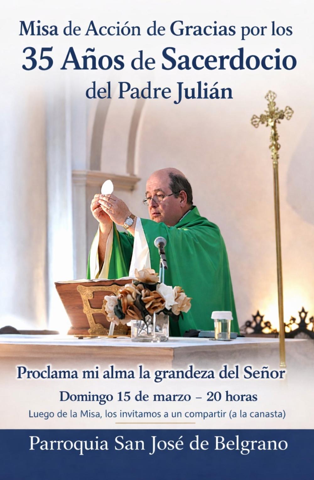 La comunidad de la Parroquia San José de Belgrano se prepara para vivir un momento especial este domingo 15 de marzo, cuando se celebre una misa de acción de gracias por los 35 años de sacerdocio del Padre Julián.