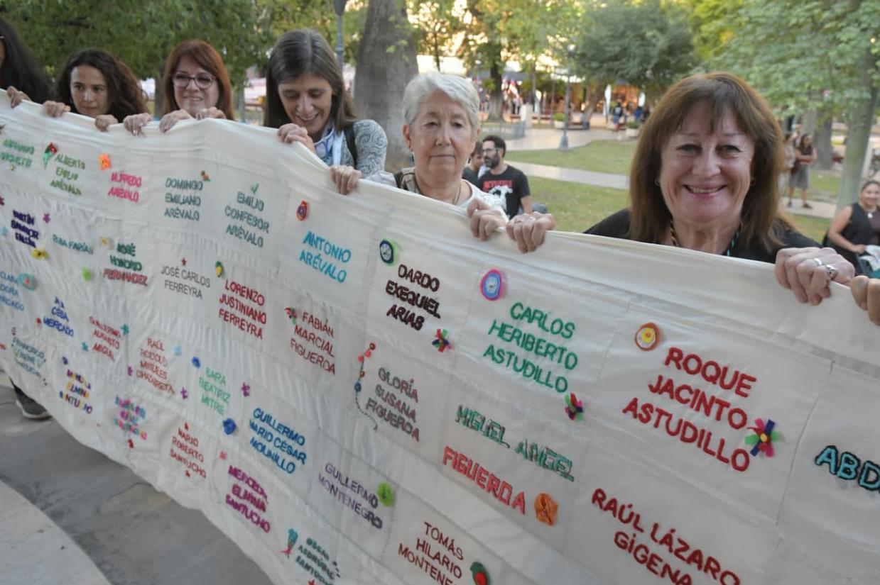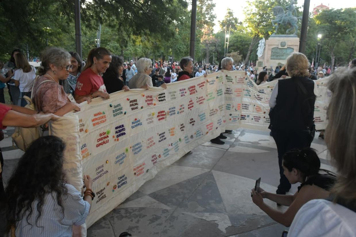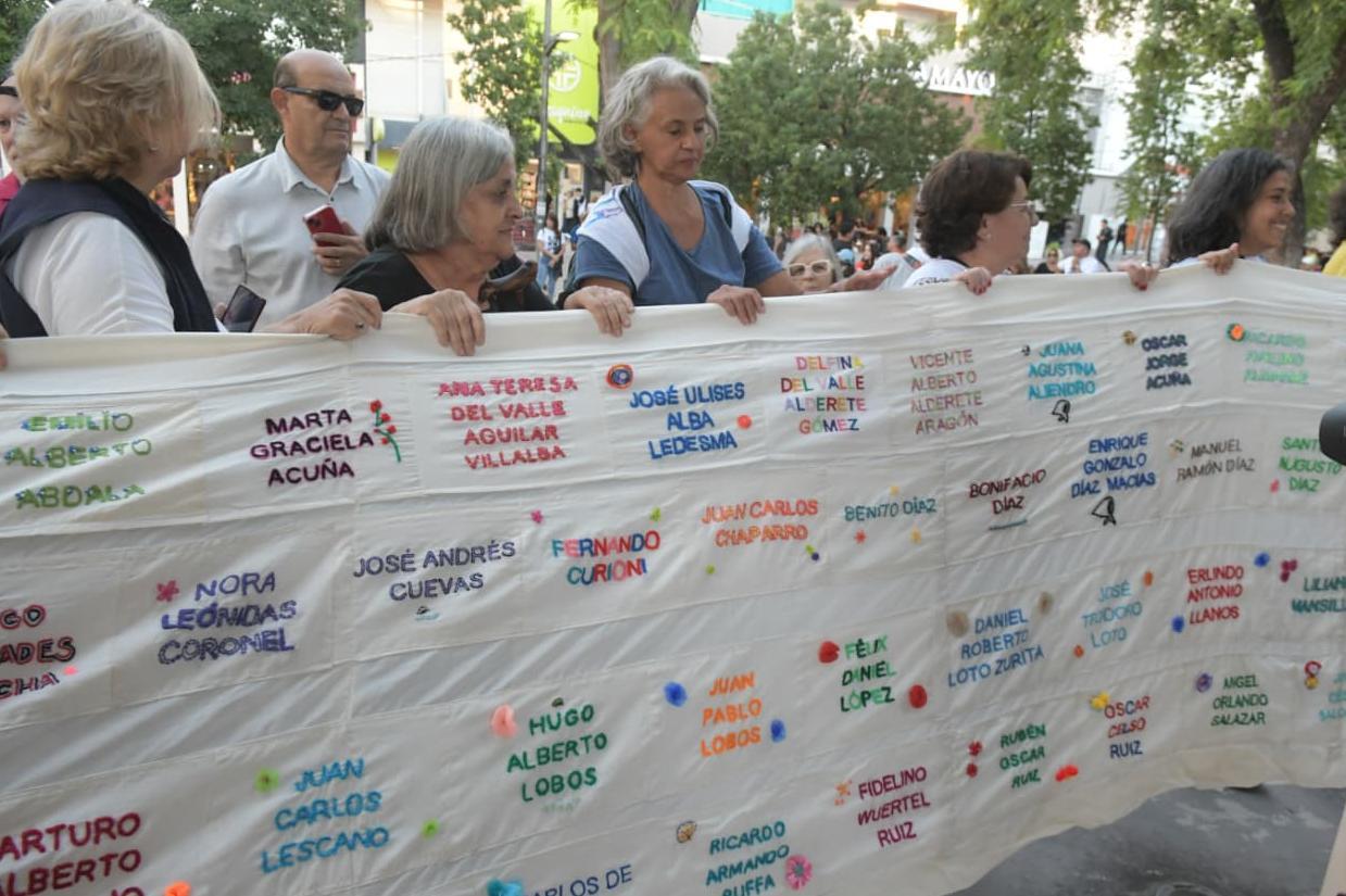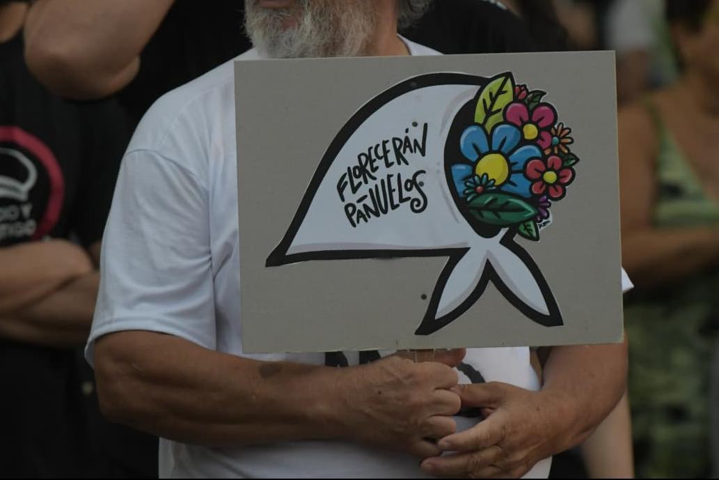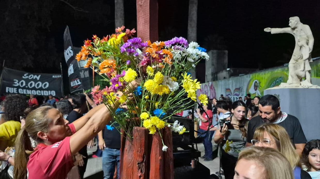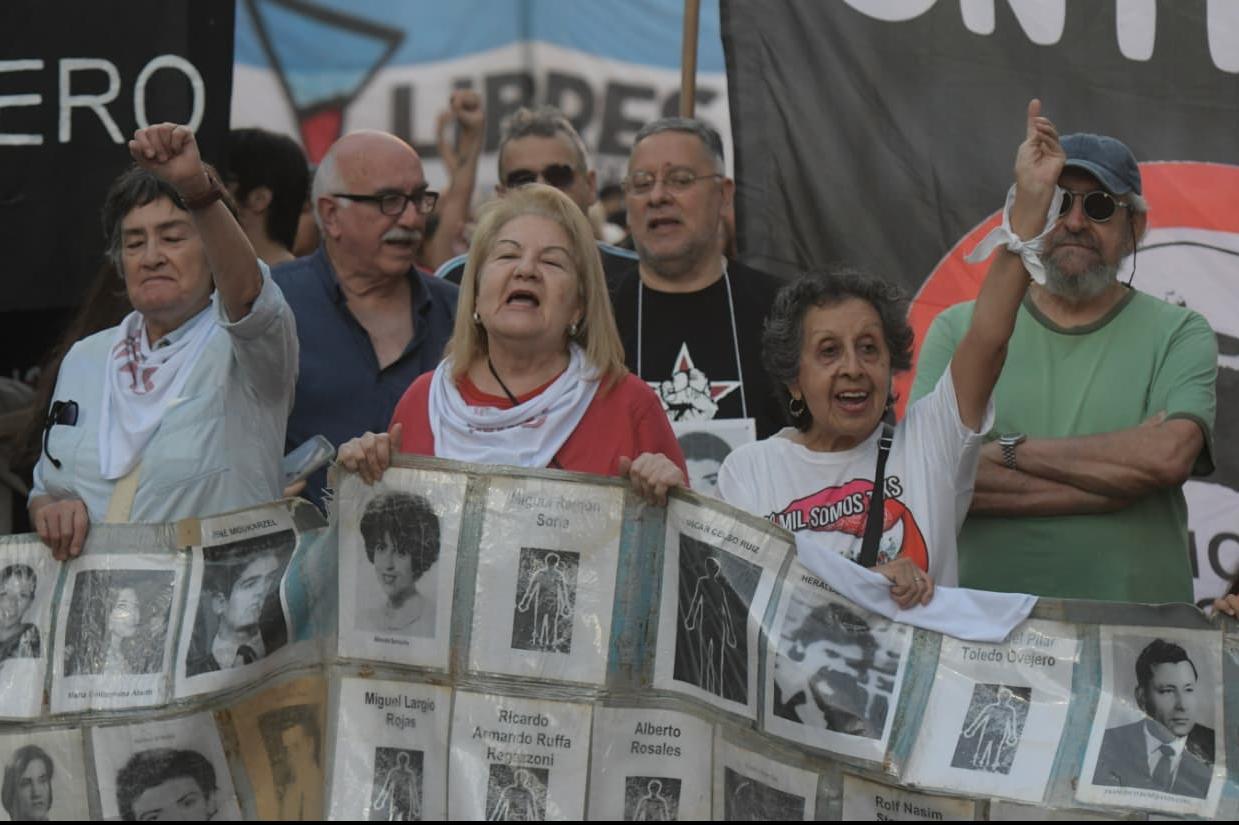 La plaza se llena de pañuelos blancos, fotos de rostros jóvenes y carteles que gritan consignas de lucha. La emoción se palpita en el aire, mientras la historia y la lucha se entrelazan en un abrazo de resistencia. Los presentes, de todas las edades, se unen en un clamor por los que ya no están, por la verdad que aún se busca y por la justicia que sigue pendiente.