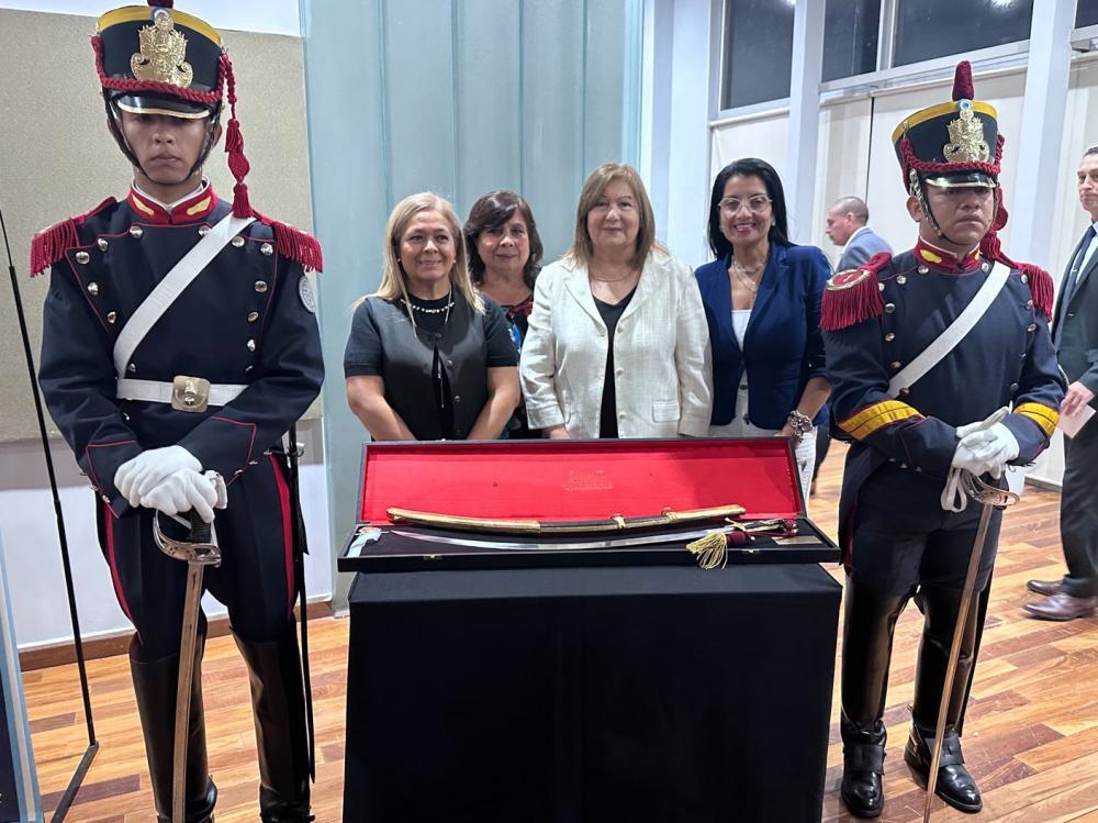 Uno de los momentos más significativos de la jornada fue la exhibición de la réplica del sable corvo del Libertador General José de San Martín. La pieza, emblema de la gesta emancipadora, permitió a los asistentes un contacto directo con el patrimonio simbólico de nuestra soberanía, en un marco de solemnidad brindado por los Granaderos a Caballo.