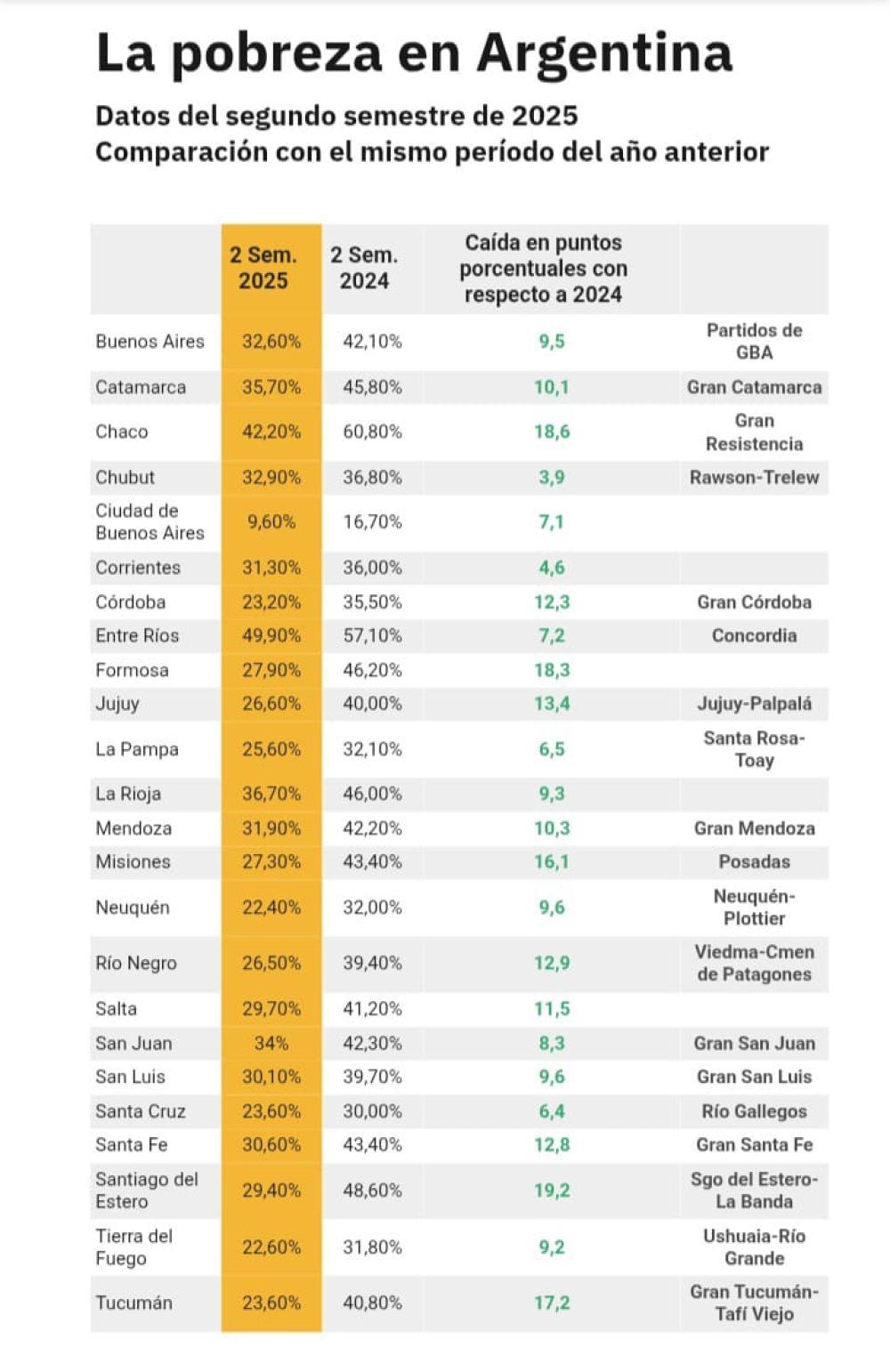 Mejoró un 19.2% y es la cuarta provincia con menor incidencia de pobreza en el país luego de reducir en ese porcentaje la pobreza. Pero, porcentualmente, es la que mayor reducción tuvo con ese 19.2%.