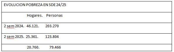 Casi 80 mil personas dejaron de ser pobres en Santiago entre el segundo semestre del 2024 y el segundo semestre del 2025 de acuerdo con los datos informados hoy por el Indec. A su vez, casi 21.000 hogares dejaron esa condición en el mismo lapso.