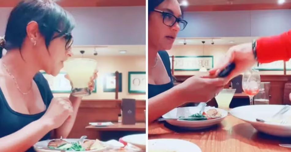 Llegaron al lugar y ella actuó como si nada estuviese por pasar, pero la amante cuando entró al restaurante y los vio juntos decidió mandarle un mensaje preguntando por qué la invita si está con ella y ahí se desató el caos.