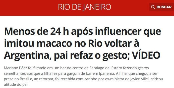 Medios brasileños se hicieron eco de un video grabado en Santiago del Estero que muestra al padre de la influencer replicando los gestos que derivaron en la causa por racismo en Río de Janeiro.