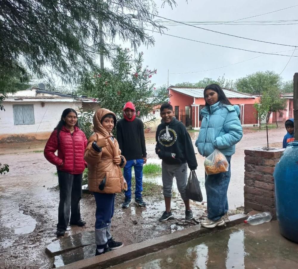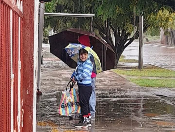Pese a la intensa lluvia de las primeras horas y a una llovizna que persiste en la jornada de hoy, el clima no fue impedimento para que los niños de la ciudad de Añatuya salieran a las calles.