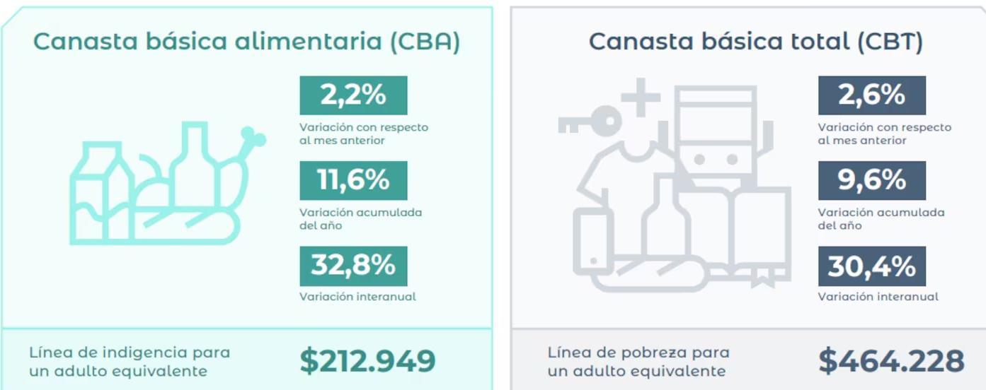 Este indicador acumuló un alza de 30,4% en los últimos 12 meses. La suba mensual de la CBT estuvo por debajo del índice de inflación general de marzo, que fue 32,6%.