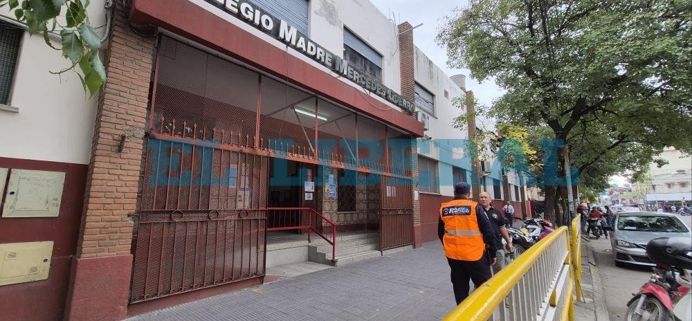 Desde las primeras horas del turno mañana, efectivos de la Policía de la Provincia se apostaron en los ingresos de establecimientos emblemáticos como el Colegio Madre Mercedes Guerra y el Colegio Nacional Absalón Rojas, entre otros.