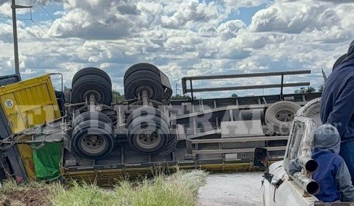 Un camión volcó este viernes 17 de abril, minutos antes de las 15, sobre la Ruta Provincial 92, a pocos kilómetros antes de llegar a Campo Gallo, en el departamento Alberdi, generando un importante operativo en la zona.