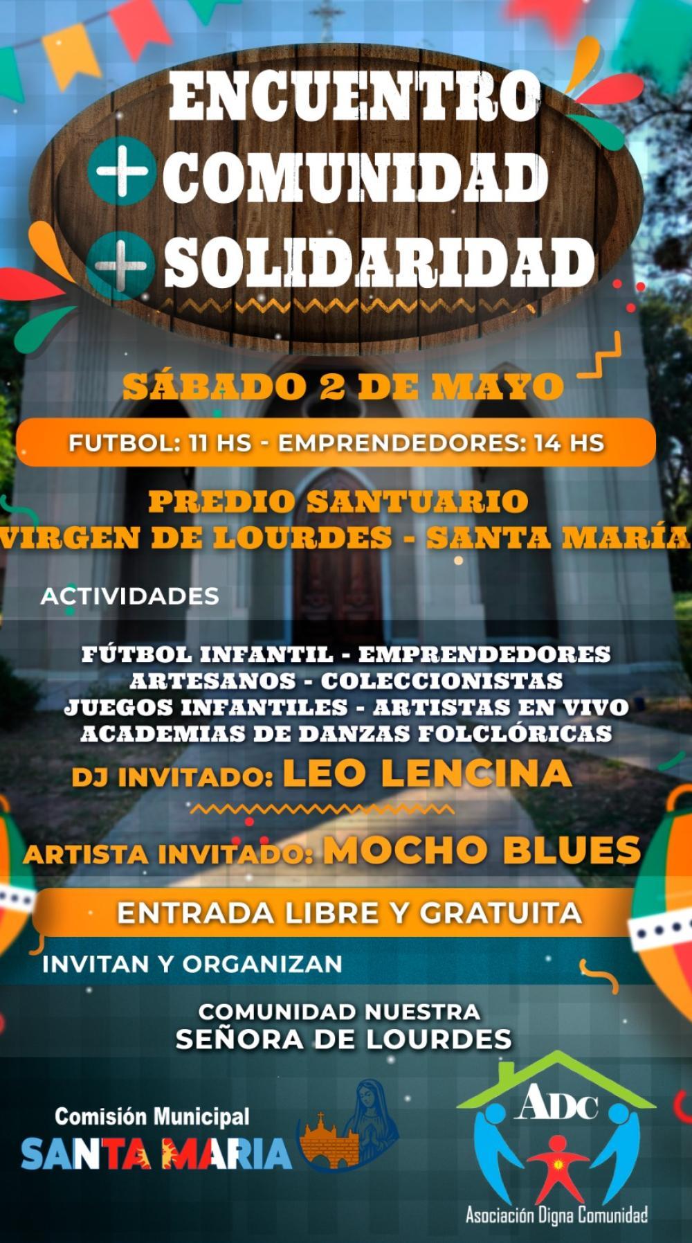 La localidad de Santa María vivirá una jornada especial el próximo sábado 2 de mayo con la realización del "Encuentro Comunidad + Solidaridad", un evento abierto y gratuito que combinará deporte, cultura y participación social.