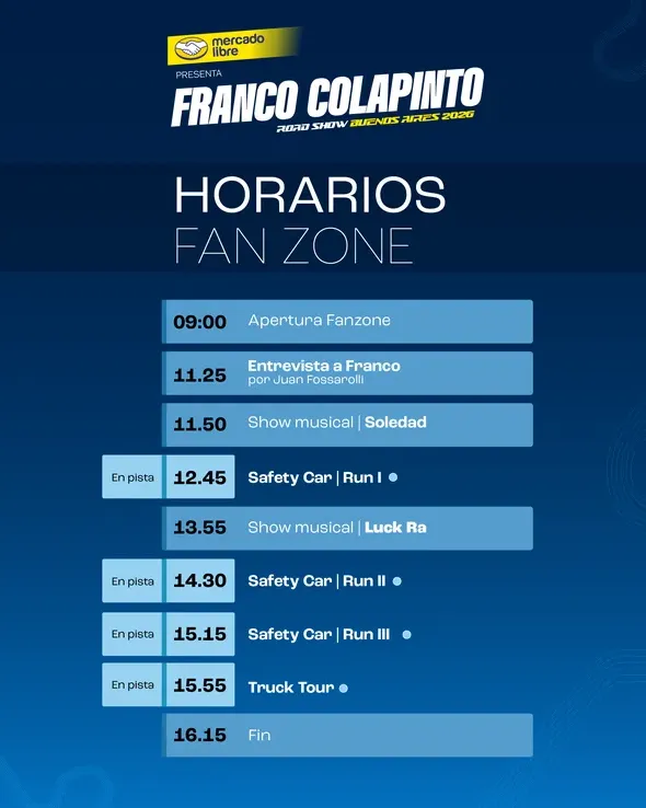 Franco Colapinto en Buenos Aires: cronograma completo del Road Show de Fórmula 1 Franco Colapinto en Buenos Aires: cronograma completo del Road Show de Fórmula 1