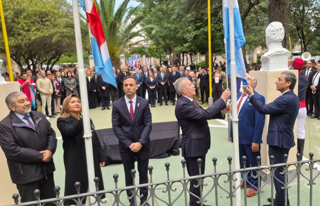 En primera instancia se procedió al izamiento de las banderas Nacional y Provincial para luego dar paso a las demás actividades programadas.