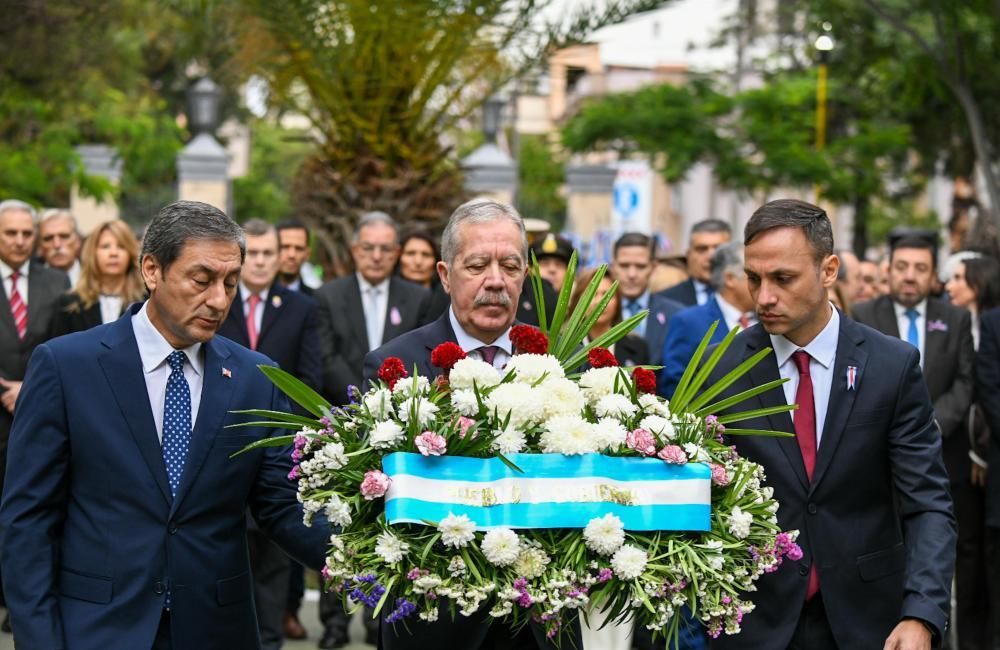 En la ceremonia formal el padre Luis Cruz realizó la invocación religiosa y luego el director de Patrimonio Cultural de la provincia, Alejandro Yocca brindó palabras alusivas, donde reflexionó sobre la importancia de la libertad y la autonomía en un contexto global complejo, "que no respeta nuestros intereses ni nuestro sistema democrático".