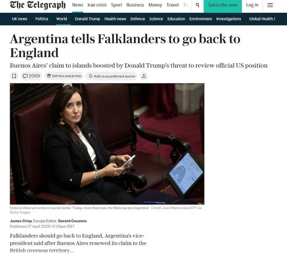 Medios del Reino Unido reflejaron las declaraciones de la vicepresidenta argentina sobre los isleños, en medio de versiones sobre un posible cambio en la postura de Estados Unidos y el refuerzo del debate diplomático.