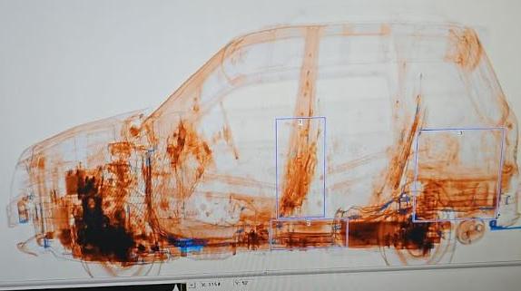 Tras realizar una inspección ocular, los guardas decidieron utilizar un método no intrusivo de control: el camión escáner de la Aduana. Las imágenes que reveló el equipo tecnológico del organismo confirmó las sospechas de los guardas. En la pantalla se podían observar bultos sospechosos ocultos en sectores laterales del baúl, en los zócalos traseros y en el interior de los respaldos de los asientos.