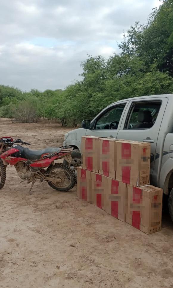 Ante este suceso, los funcionarios desplegaron un seguimiento controlado del vehículo y en inmediaciones del Paraje Aguas Blancas los efectivos observaron polvo suspendido en el aire, que indicaba que el rodado había pasado recientemente. A unos kilómetros, en cercanías a un basural, el personal de la Fuerza halló el auto abandonado y cargado con cajas (aparentemente se trataba de mercadería de contrabando).