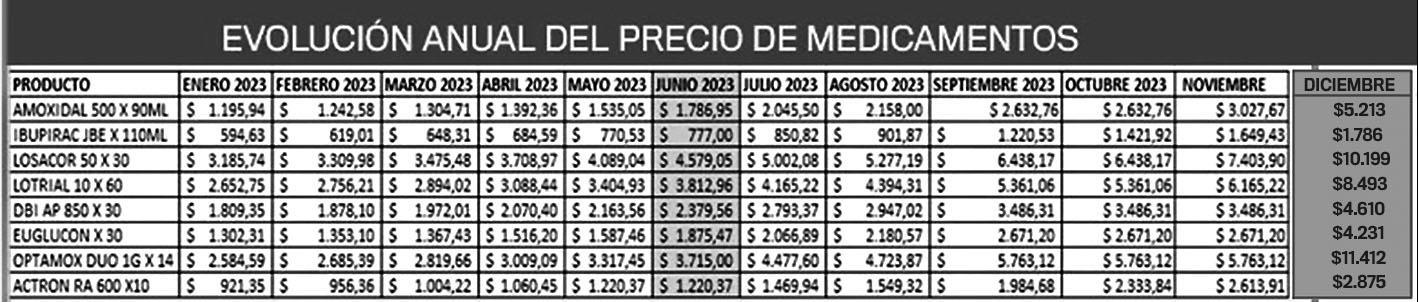 En tanto, medicamentos para tratar la presión arterial como el Losacor 50 x 30, superaron los $10.000 de costo. En noviembre, este remedio costaba $7.403, pero ahora cuesta $10.200. Aumentó en casi $2.800, un 37% en solo un mes.