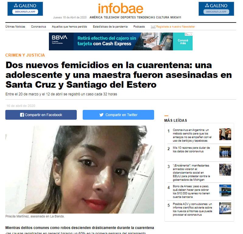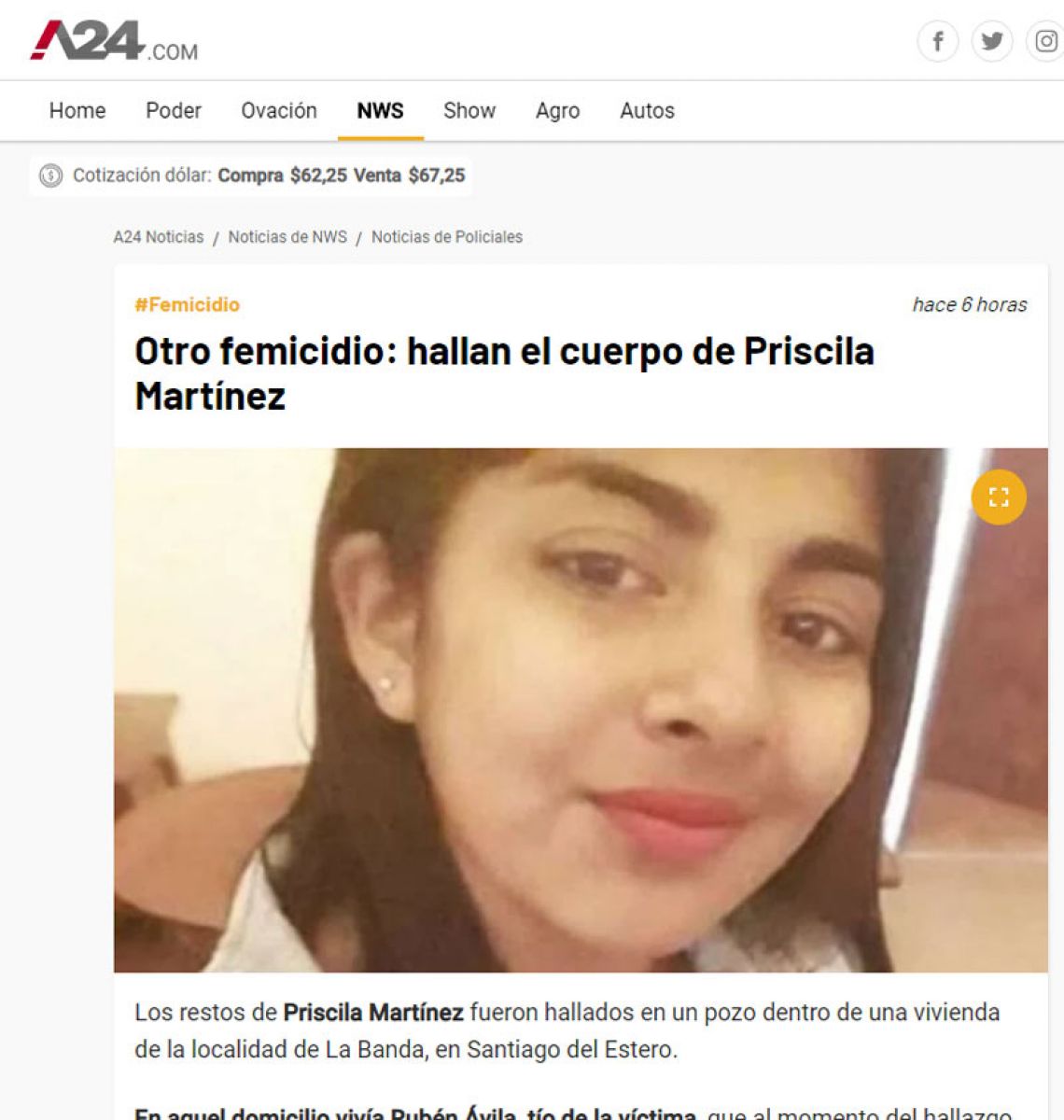 Así reflejaron los medios nacionales el femicidio de Priscila Martínez Así reflejaron los medios nacionales el femicidio de Priscila Martínez