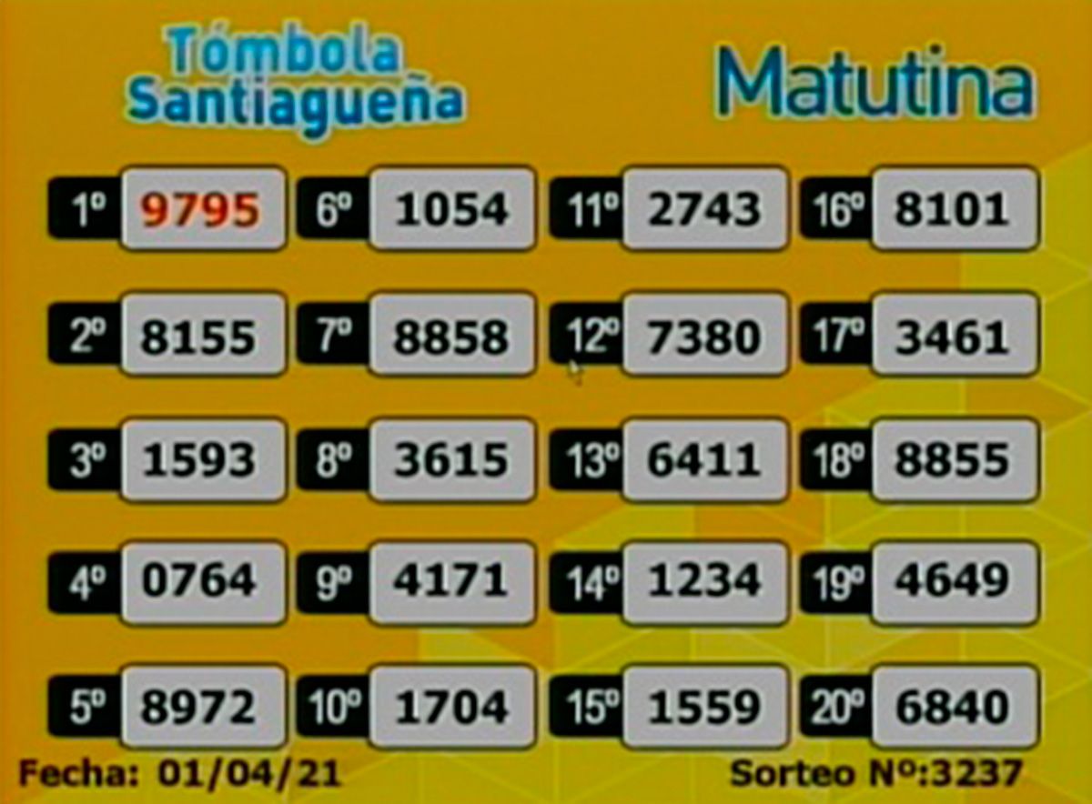 Tómbola Santiagueña: los números de este jueves 1 de abril Tómbola Santiagueña: los números de este jueves 1 de abril